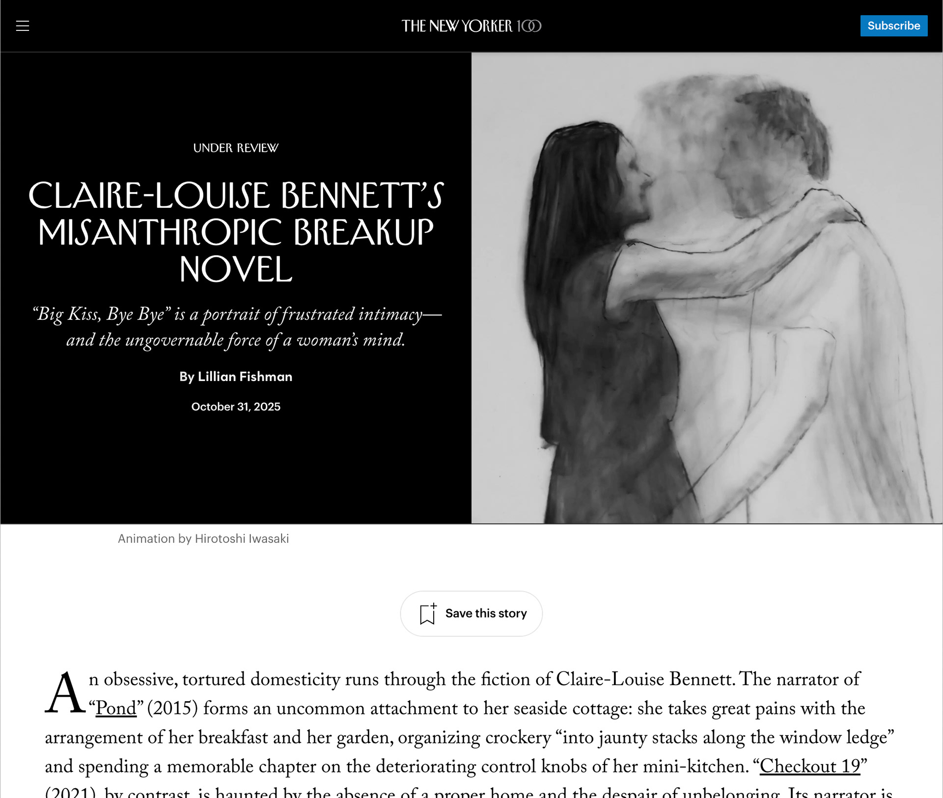 I created the animation for The New Yorker review of Claire-Louise Bennett’s new book Big Kiss, Bye-Bye.